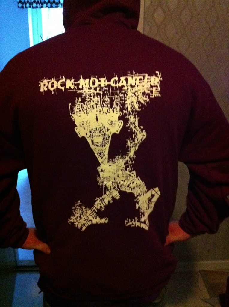 Det första som händer är spelningen på KGB bar fredagen den 13/9 med Dagger och Aoousch på scenen. Då hoppas jag att alla som läser detta kommer och upplever två grymt bra band och samtidigt bidrar till insamlingen. Det är denna kväll 60 kronor i inträde varav 40 kronor går till insamlingen. Det kommer även att finnas nytryckta Rock mot cancer t-shirts och Hoodies till försäljning som Swedish Merch har tryckt för rabatterade priser. Allt överskott på dessa går självklart också till insamlingen.